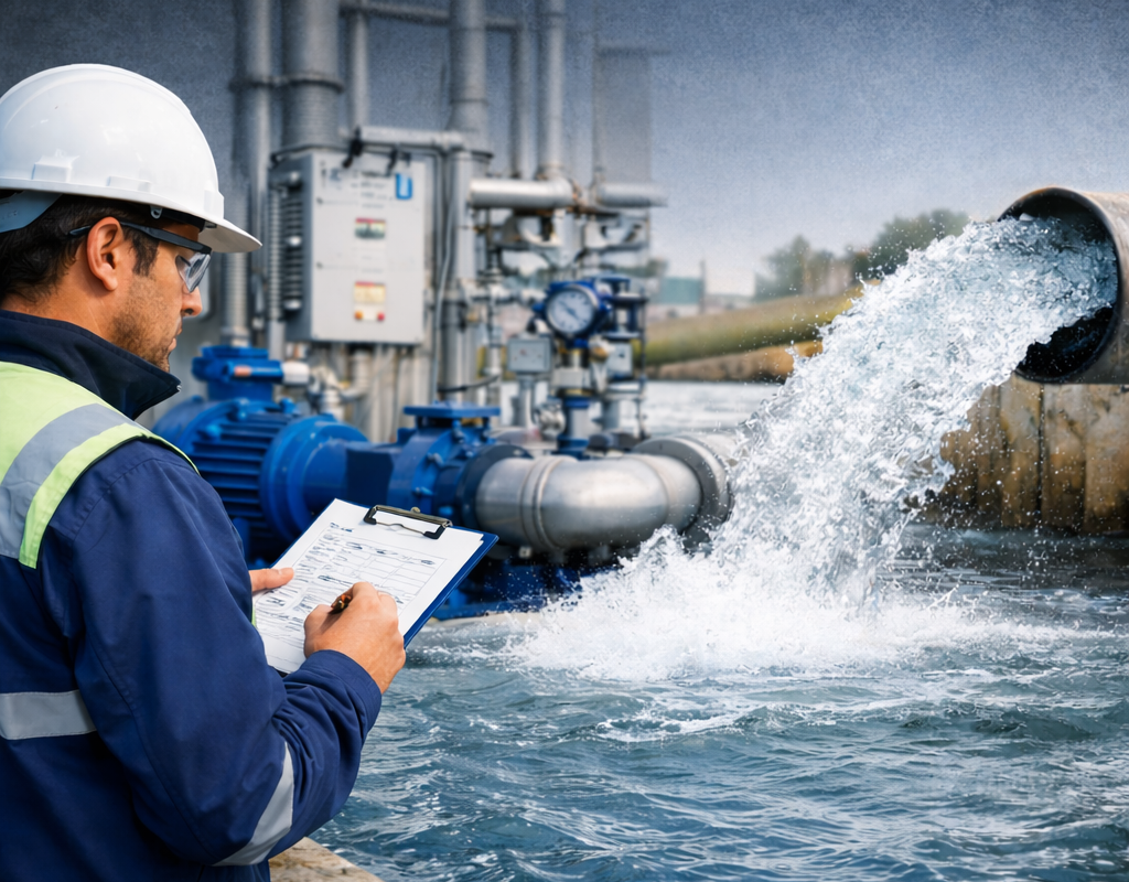 تصویری واقع‌گرایانه از فرایند تست کارایی در پروژه‌های انتقال آب که مهندسی متخصص را در حال بررسی دقیق عملکرد تجهیزات و ثبت داده‌های عملیاتی نشان می‌دهد. حضور پمپ‌های صنعتی، خطوط انتقال و جریان پرقدرت آب در پس‌زمینه، بیانگر اجرای آزمون‌ها در شرایط واقعی بهره‌برداری است؛ جایی که سامانه باید حداکثر ظرفیت، پایداری و ایمنی خود را به‌طور هم‌زمان حفظ کند. این صحنه نشان می‌دهد که تست کارایی صرفاً یک بررسی تئوریک نیست، بلکه فرایندی میدانی و مبتنی بر داده‌های واقعی است که برای اطمینان از آمادگی کامل زیرساخت‌ها انجام می‌شود.